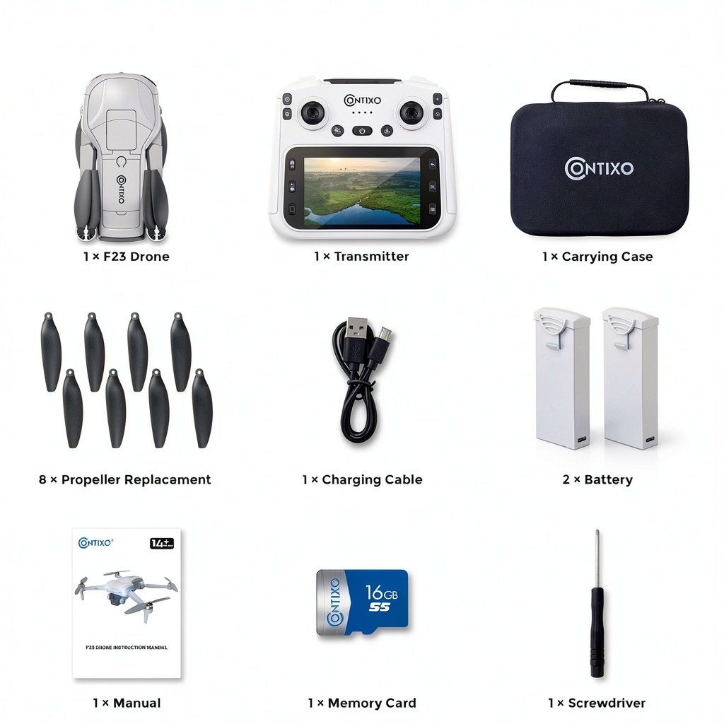Contixo stands out with the F23 drone by integrating a built-in screen for immediate FPV access, reducing setup time and enhancing convenience. Our focus on quality craftsmanship ensures durable construction and reliable performance, backed by smart GPS and optical flow for superior stability. The inclusion of a complete travel kit with essential accessories provides added value, while the beginner-friendly design prioritizes safety and ease of use. Choose Contixo for a drone that combines innovation, practicality, and long-lasting support.