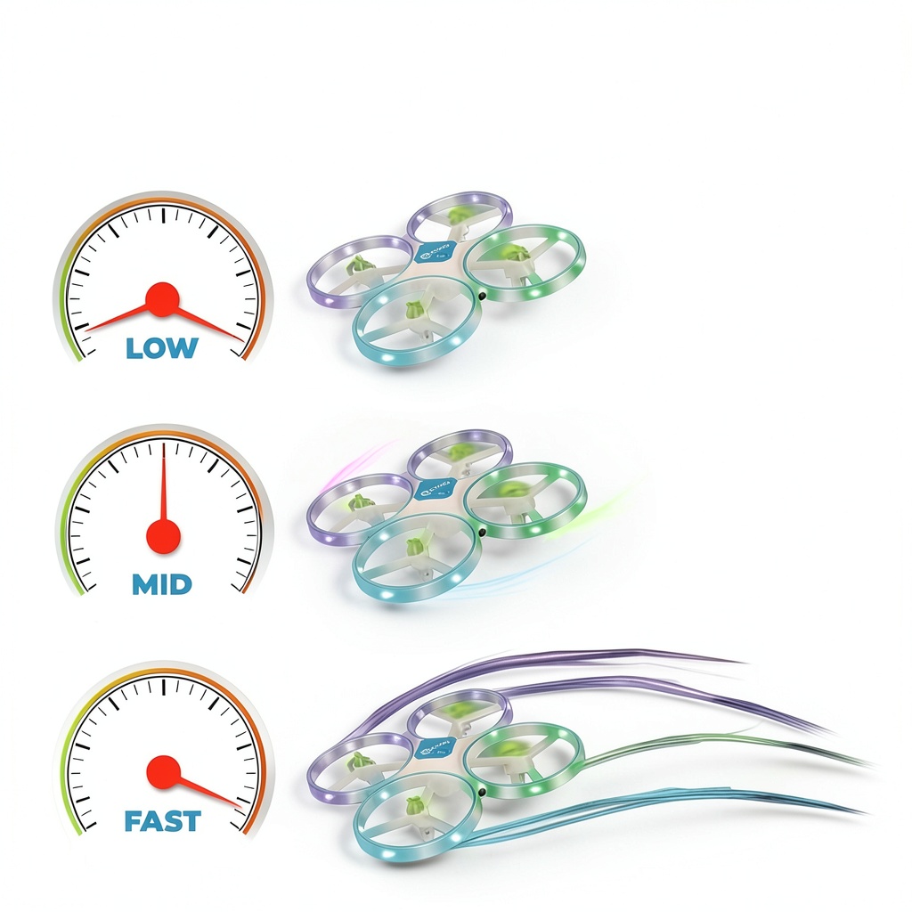 - Perform 360-degree flips and stunts with a speed switch for dynamic aerial shows.