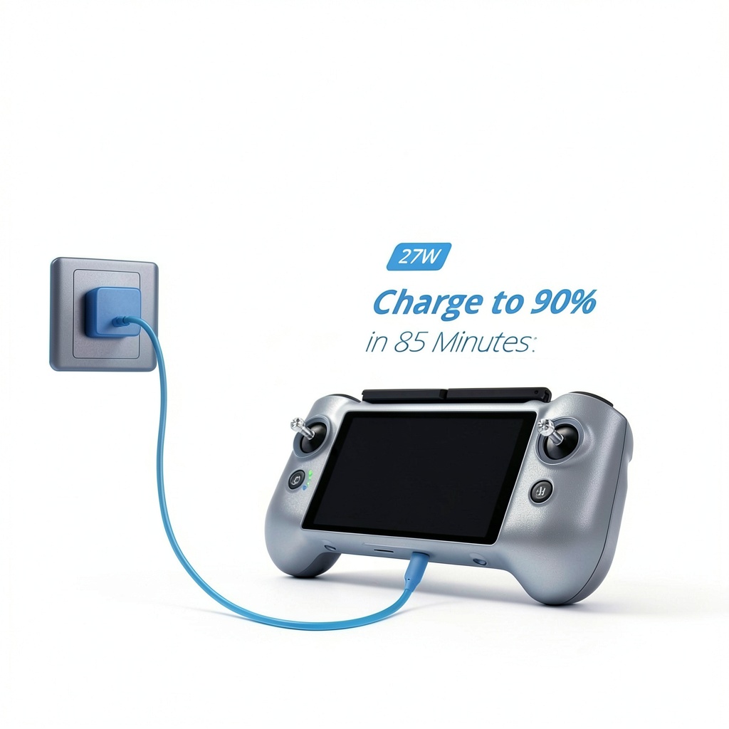 The PTD 1 remote controller supports 27W fast charging, reaching 90% battery in approximately 85 minutes, with a total runtime of up to 3 hours for extended use.