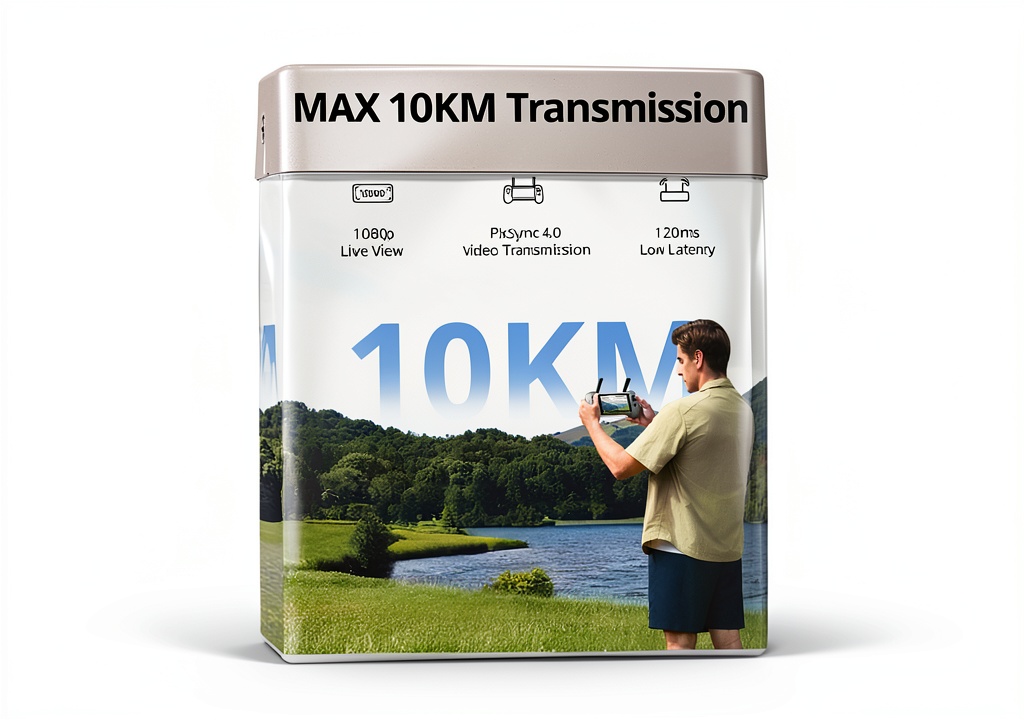 The ATOM 2 drone supports up to 10km transmission with PixSync 4.0 technology, providing stable control and 1080p/30fps live video feed for long-distance flights.