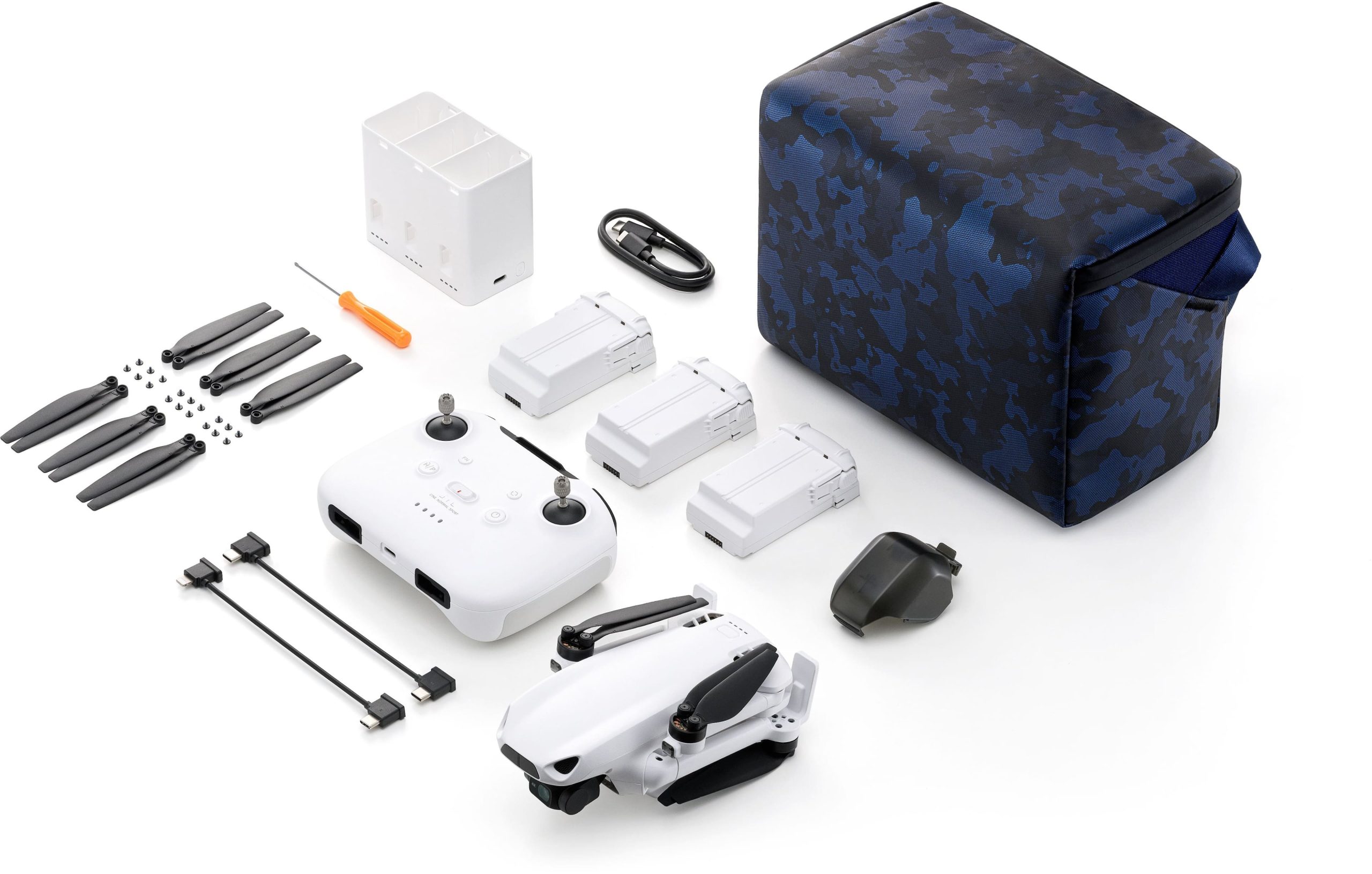 Each battery provides up to 40 minutes of flight, totaling 120 minutes with the included three batteries in the Fly More Combo.